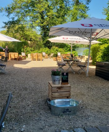 Direkt nebenan ist der größte Spielplatz von Strausberg – so können sich die „Kleinen“ auch zwischen den Gängen stets beschäftigen und vergnügen. Vom gesamten Biergarten aus hat man einen wunderbaren Blick auf den Straussee, was den „Großen“ bestmögliche Erholung und Entspannung garantiert.